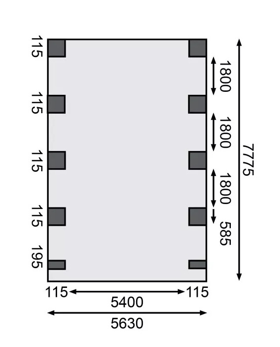 Přístřešek na auto - obdélníkový tvar a svými rozměry vyhovuje většině modelů vozidel běžných na českém trhu. Celková zastřešená plocha je 5,98 x 8,60 m. Průjezdná výška je 206 cm. Střechu podpírá deset dřevěných sloupků 11,5 x 11,5 cm. Konstrukce přístřešku je tlakově impregnována a je tak dobře chráněna proti dřevokazným houbám i hmyzu, ale i proti nepříznivým povětrnostním podmínkám. Impregnace je zdravotně nezávadná a naprosto bezpečná. Vzhledem k velkým plochám střechy a zatížení větrem je nutné připevnit přístřešek k zemi pomocí odpovídajících zemních kotev (nejsou obsahem dodávky - lze dokoupit jako příplatkové příslušenství).