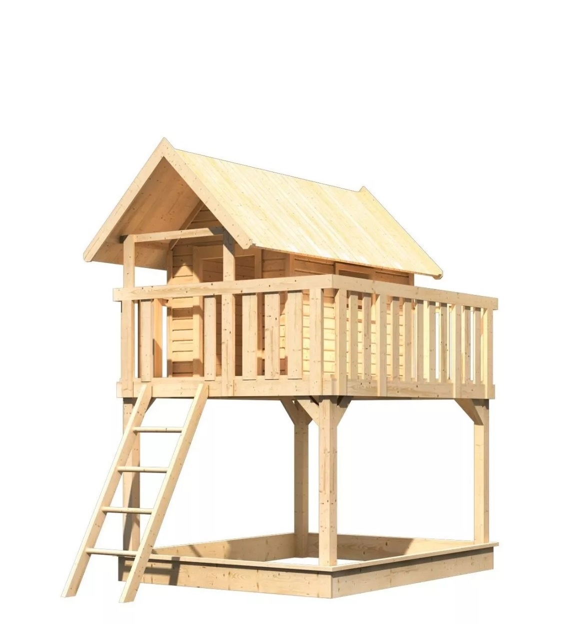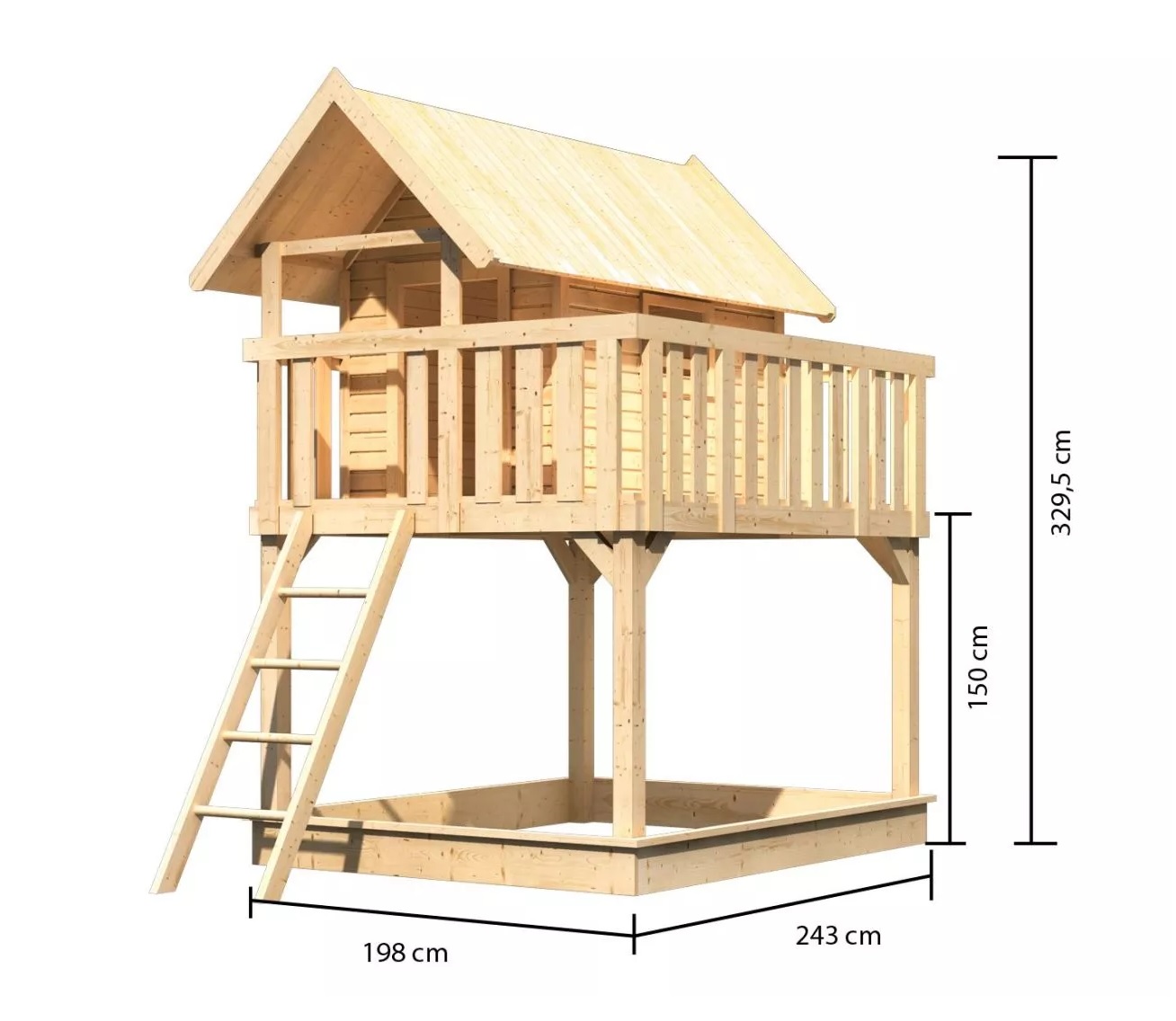 Dětské hřiště KARIBU FIDEL zaujme mimořádně vysokou stabilitou a dlouhou životností. Poskytuje dětem spoustu možností ke hrám. Nabízí vše k tomu, aby děti mohly prožít veškeré své hrací fantazie. Stejně jako u všech našich dětských hřišť i u modelu KARIBU FIDEL používáme výhradně to nejlepší smrkové dřevo. Hřiště má nosné sloupy o tloušťce 90 x 90 mm a je vyrobené z dřevěných profilů o síle 19 mm (spoje v systému pero / drážka). Naše dřevo pochází ze vzdáleného severu Evropy a je chemicky naprosto neošetřené. V důsledku toho je prosté všech známých problematických látek. Díky výšce plošiny 150 cm nabízí hřiště KARIBU FIDEL dětem dokonalý výhled na zahradu. Hřiště je standardně vybaveno robustním dřevěným žebříkem se 4 příčkami a pískovištěm pod věží. Dětské hřiště KARIBU FIDEL má samozřejmě certifikát TÜV Nord ověřující bezpečnost výrobku (GS) podle DIN EN 71-1, DIN EN 71-3, DIN EN 71-8 a AfPS GS 2014.