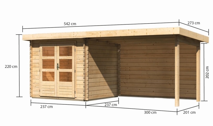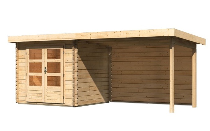 dřevěný domek KARIBU BASTRUP 2 + přístavek 300 cm včetně zadní stěny (9301) natur