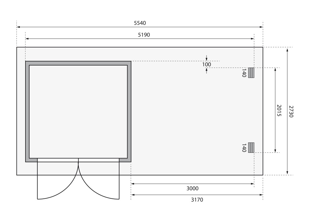 Tato verze domku obsahuje i přístavek včetně zadní stěny délky 300 cm.