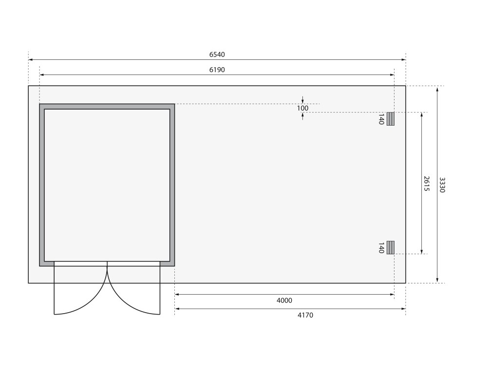 - dvoukřídlé dveře na pantech o celkové světlosti š 140 x v 173 cm