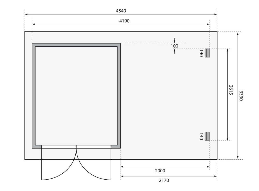 Tato verze domku obsahuje i přístavek včetně zadní stěny délky 200 cm.