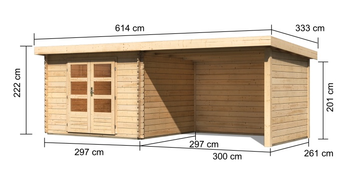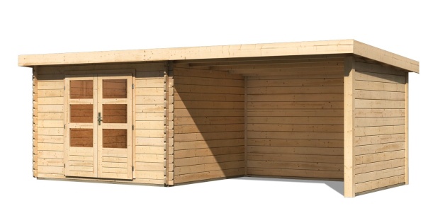dřevěný domek KARIBU BASTRUP 5 + přístavek 300 cm včetně zadní a boční stěny (73329) natur