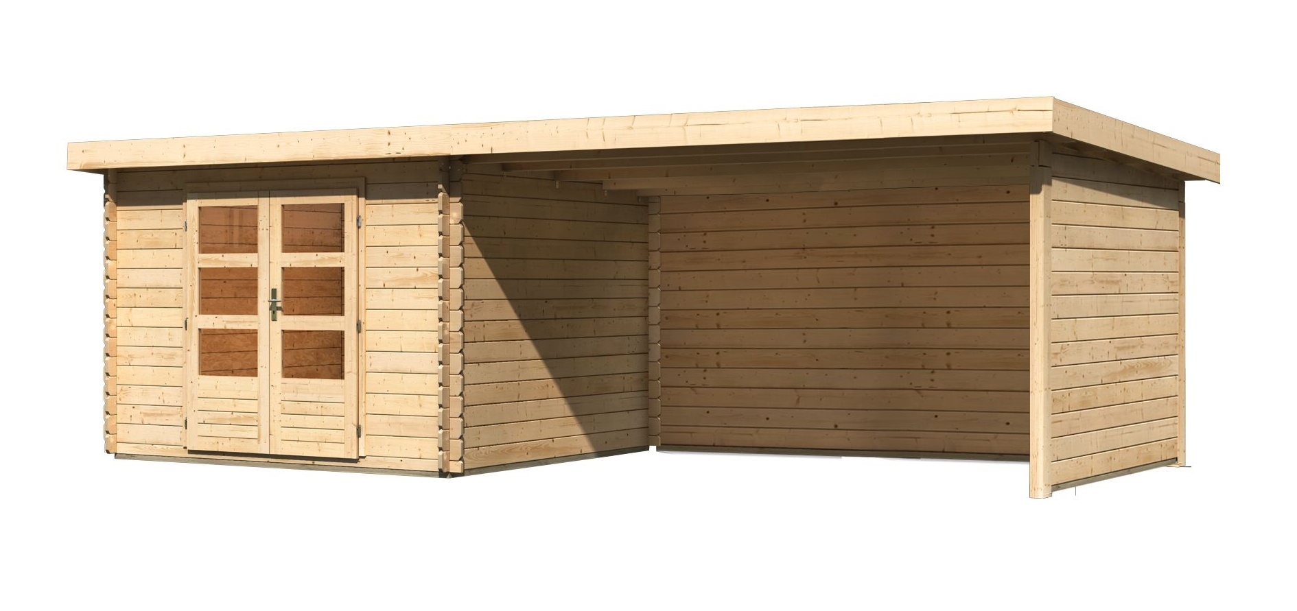 dřevěný domek KARIBU BASTRUP 5 + přístavek 400 cm včetně zadní a boční stěny (9312) natur