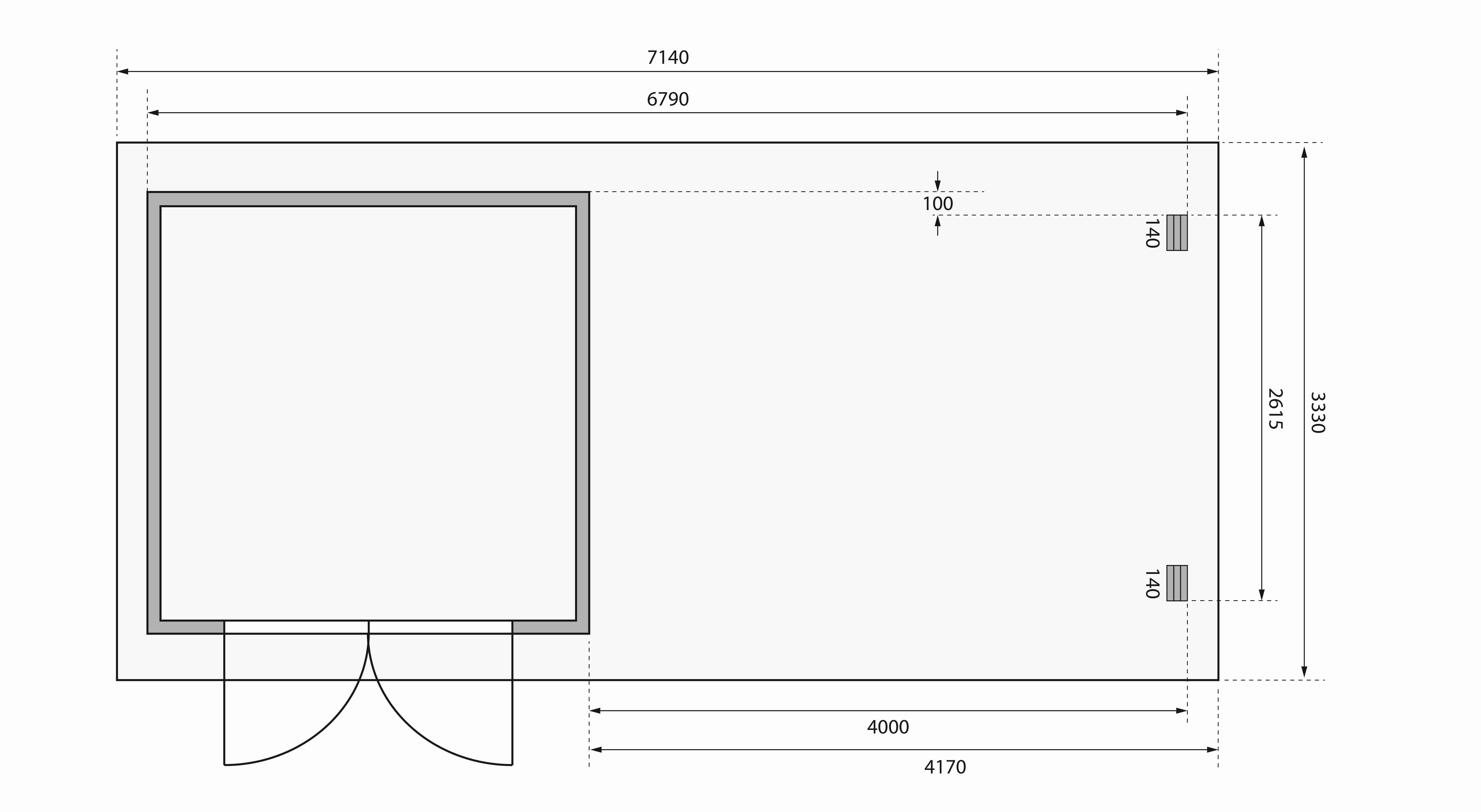 Tato verze domku obsahuje i přístavek včetně zadní a boční stěny délky 400 cm.