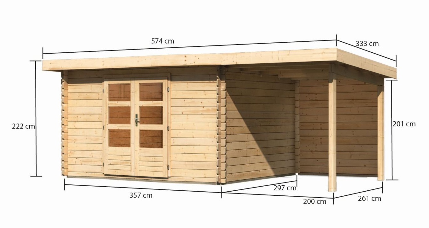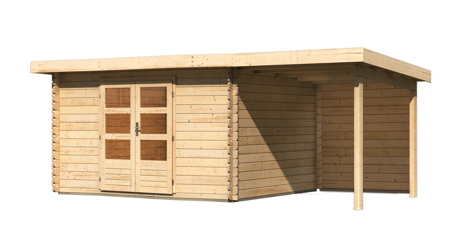dřevěný domek KARIBU BASTRUP 7 + přístavek 200 cm včetně zadní stěny (9313) natur