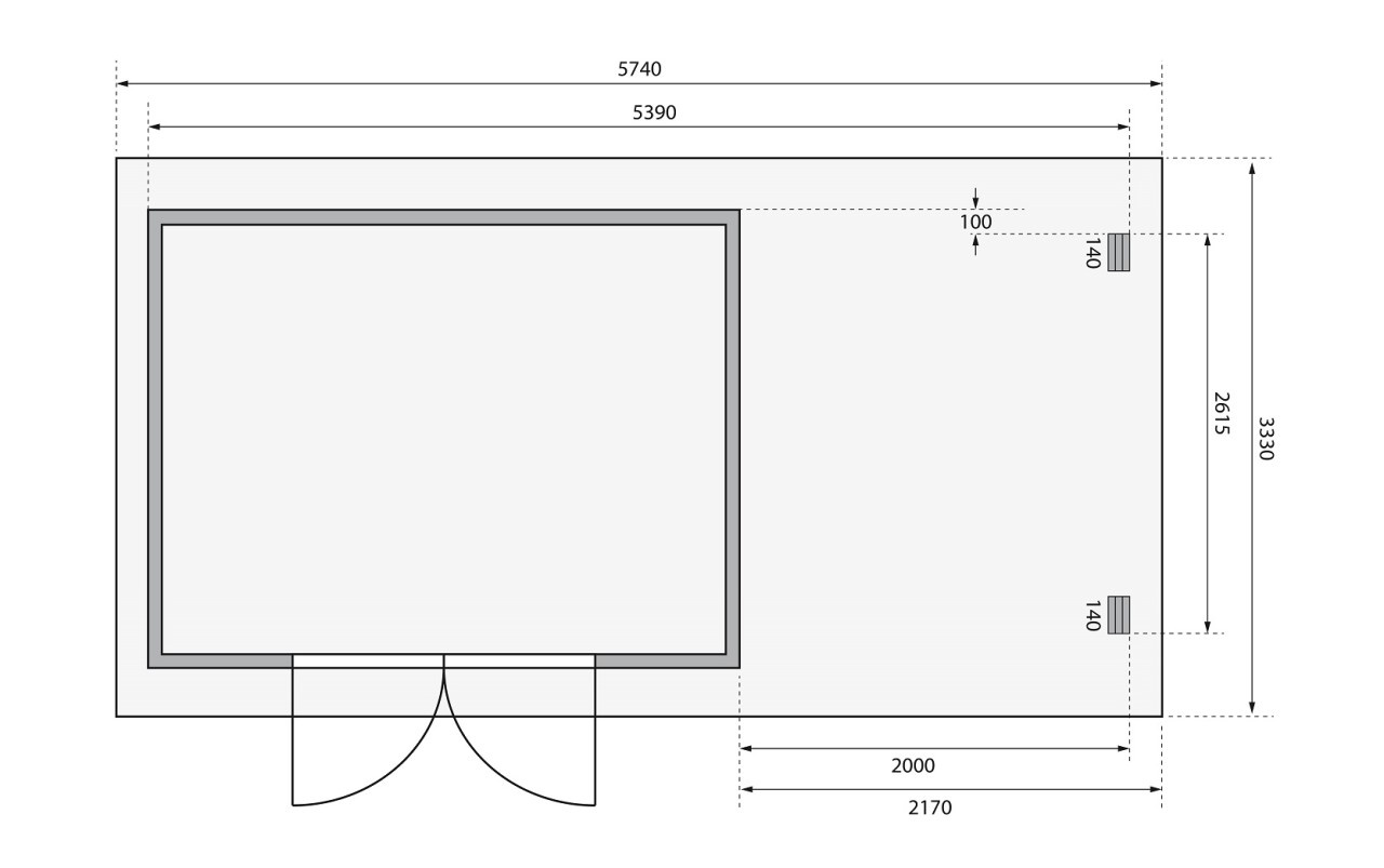Tato verze domku obsahuje i přístavek včetně zadní stěny délky 200 cm.