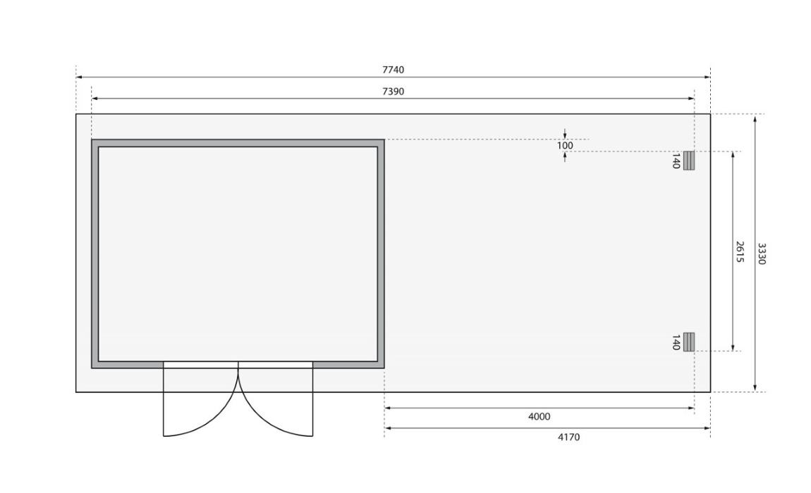 Tato verze domku obsahuje i přístavek délky 400 cm.