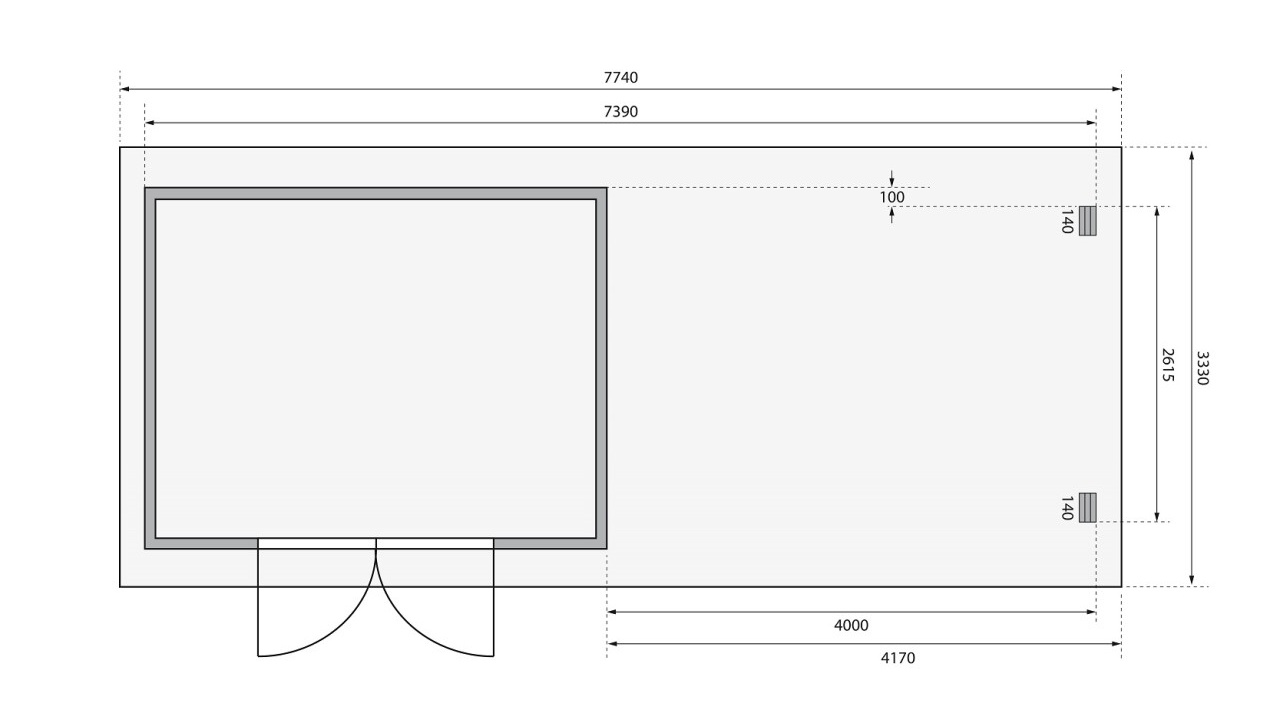 Tato verze domku obsahuje i přístavek včetně zadní a boční stěny délky 400 cm.