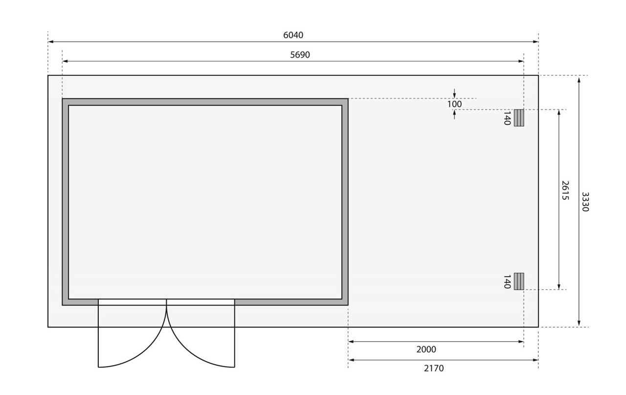 Tato verze domku obsahuje i přístavek délky 200 cm.