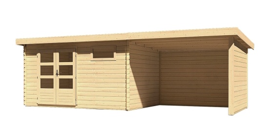 dřevěný domek KARIBU BASTRUP 8 + přístavek 300cm včetně zadní a boční stěny (78677) natur