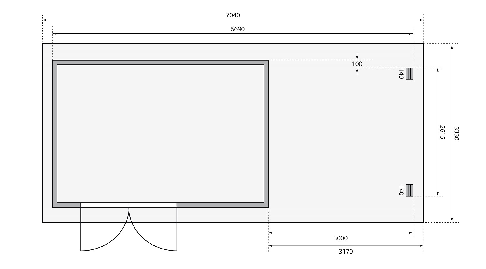 Tato verze domku obsahuje i přístavek včetně zadní a boční stěny délky 300 cm.