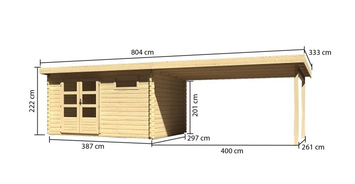 dřevěný domek KARIBU BASTRUP 8 + přístavek 400cm (78678) natur