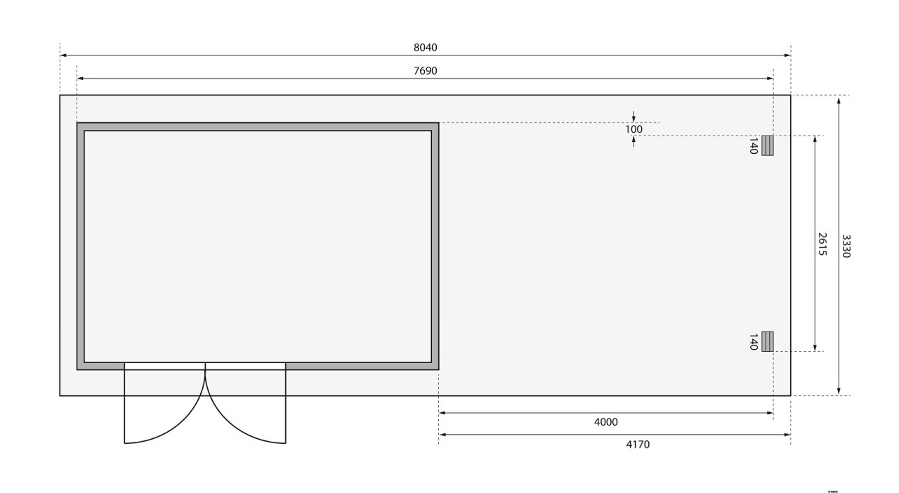 Tato verze domku obsahuje i přístavek délky 400 cm.