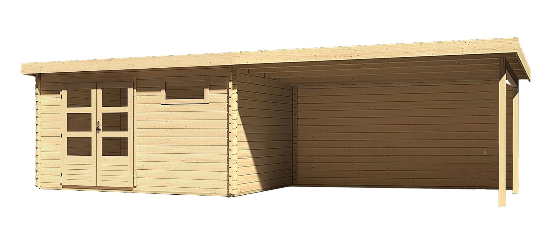 dřevěný domek KARIBU BASTRUP 8 + přístavek 400 cm včetně zadní stěny (9319) natur