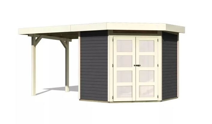 dřevěný domek KARIBU GOLDENDORF 3 + přístavek 240 cm (78243) terragrau