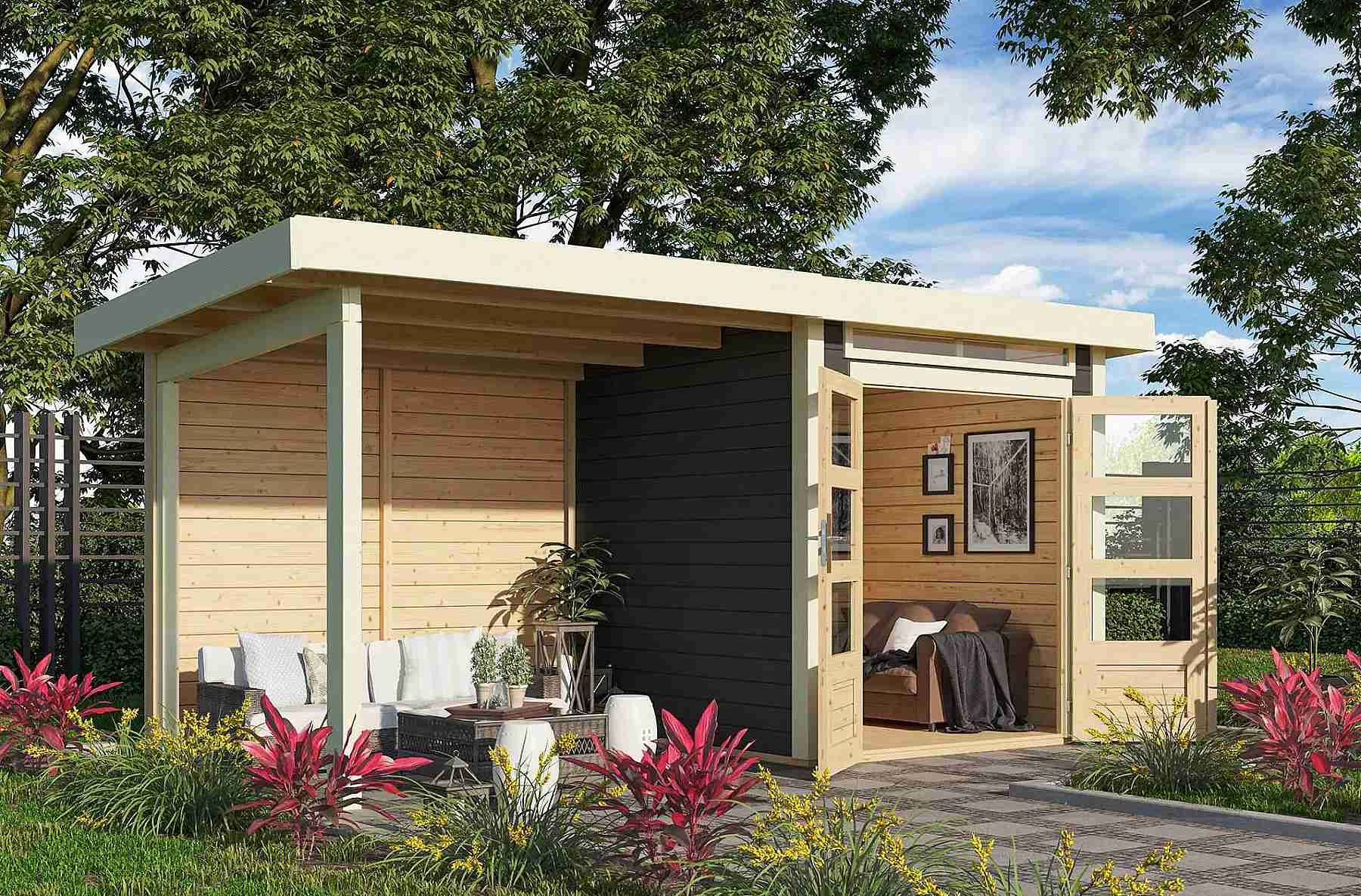 dřevěný domek KARIBU KANDERN 1 + přístavek 235 cm včetně zadní stěny (23608) terragrau