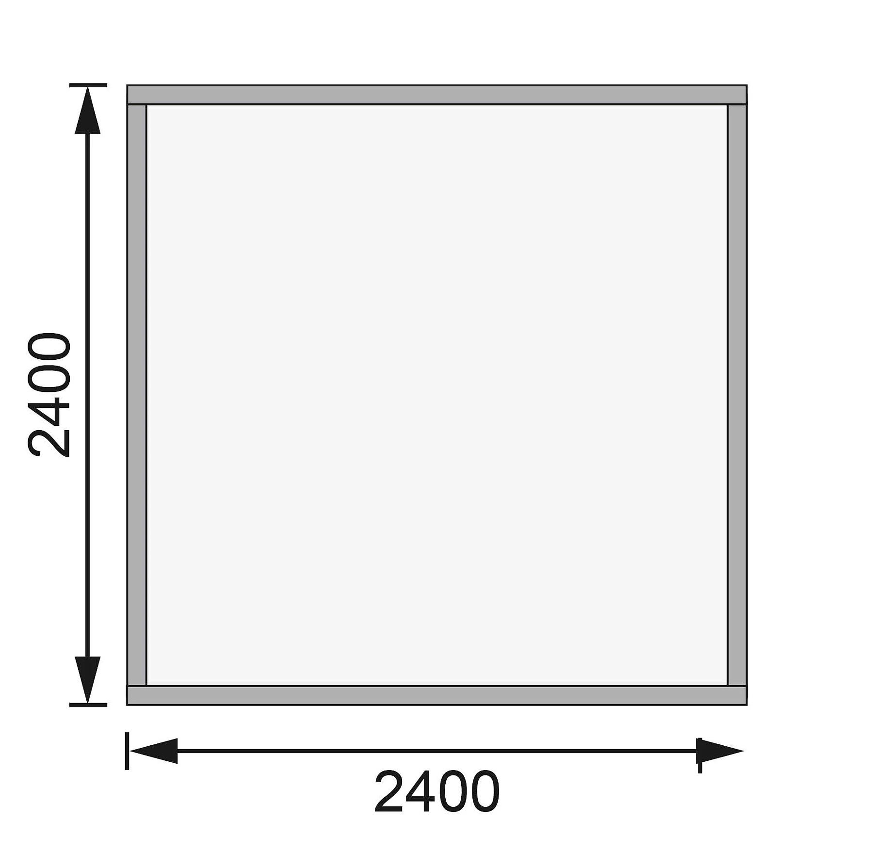 Dřevěný domek, síla stěny 28 mm, rozměry š 244 x d 244 cm, vnější plocha domku 5,95 m2.