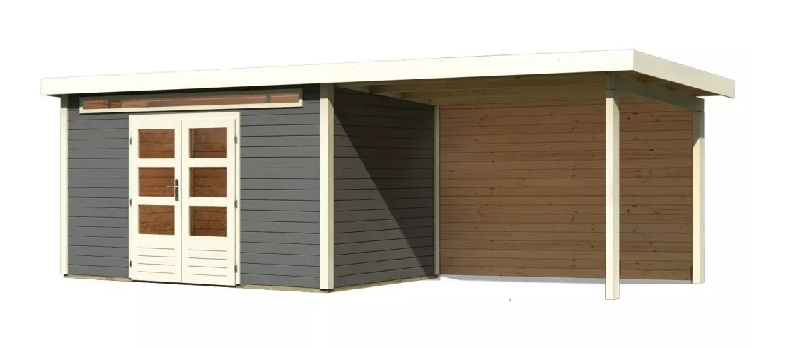 dřevěný domek KARIBU KANDERN 7 + přístavek 320 cm včetně zadní stěny (9249) terragrau