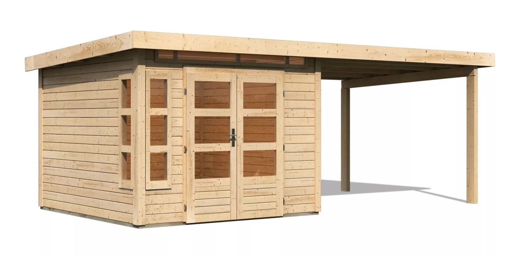 dřevěný domek KARIBU KASTORF 6 + přístavek 320 cm (31542) natur