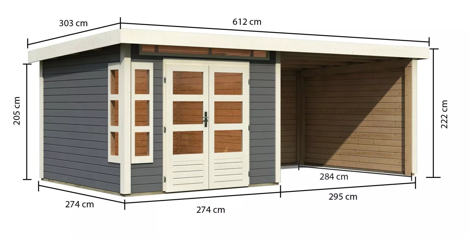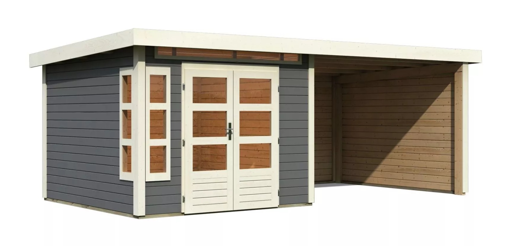 dřevěný domek KARIBU KASTORF 6 + přístavek 320 cm včetně zadní a boční stěny (31549) terragrau