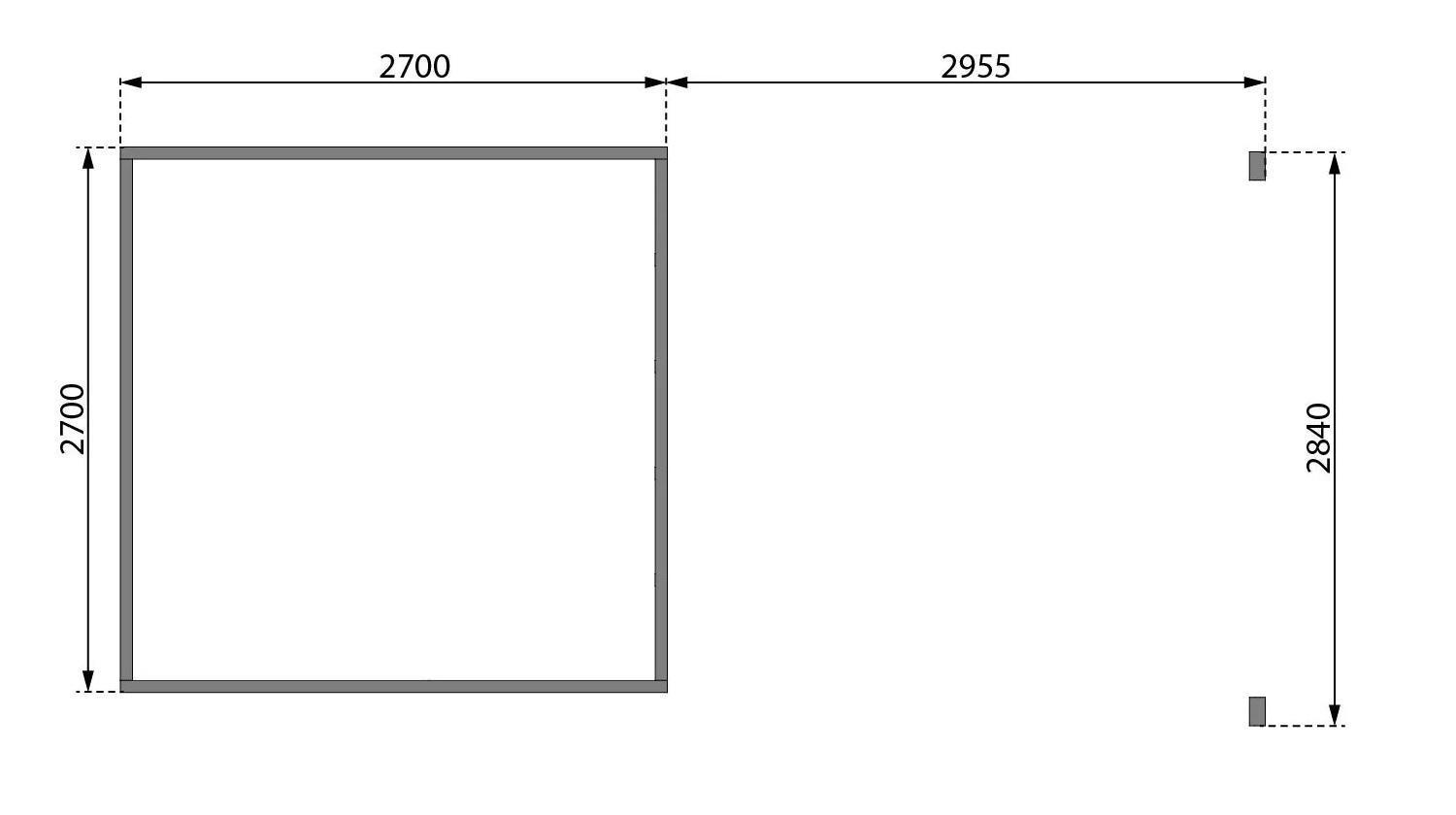 Tato verze domku obsahuje i přístavek včetně zadní a boční stěny délky 320 cm.
