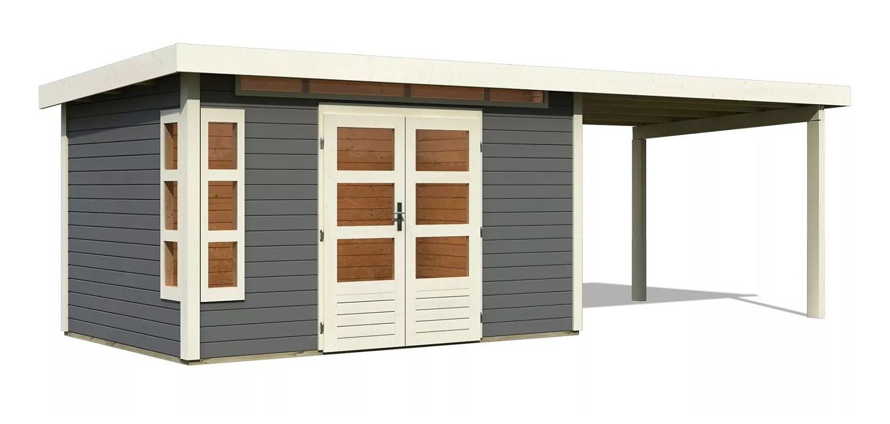 dřevěný domek KARIBU KASTORF 7 + přístavek 320 cm (31557) terragrau