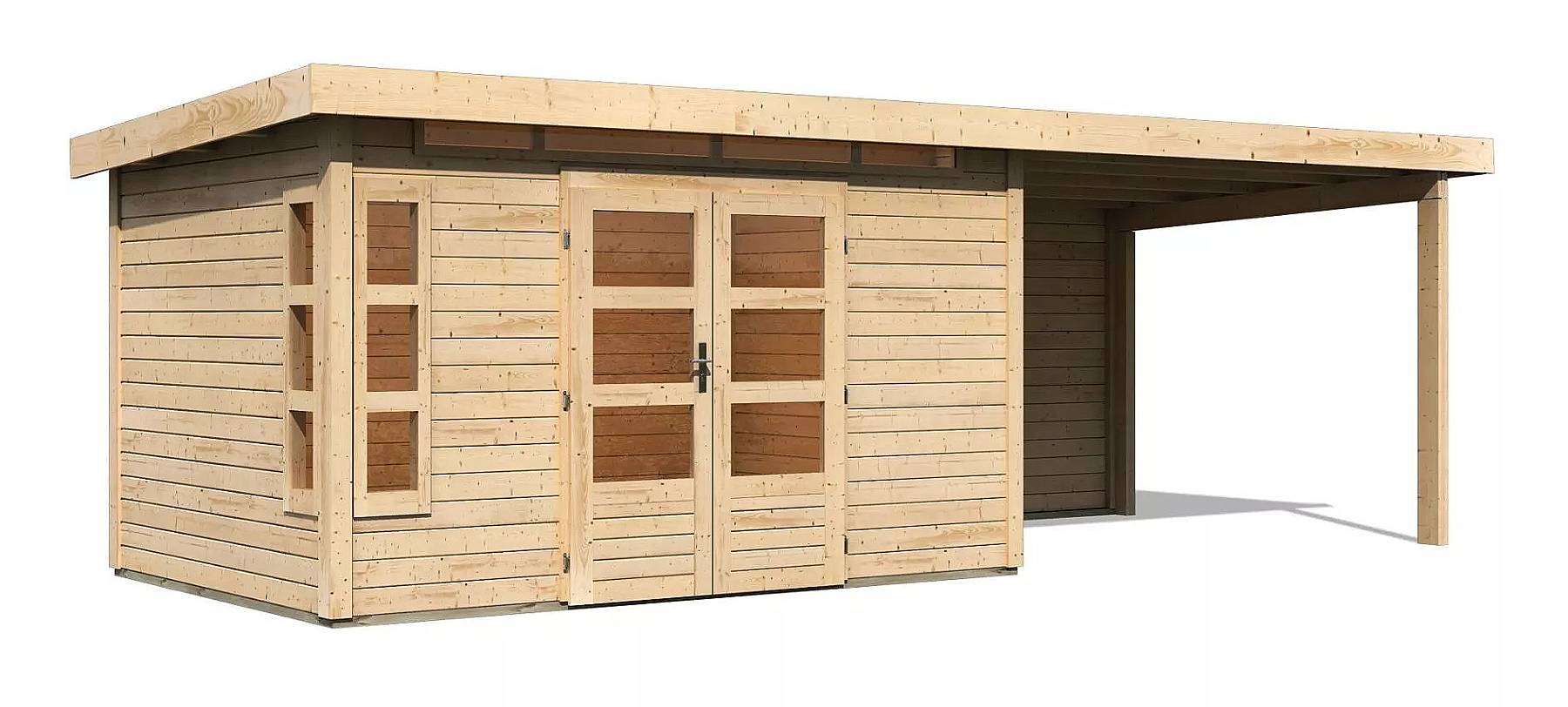 dřevěný domek KARIBU KASTORF 7 + přístavek 320 cm včetně zadní stěny (31558) natur