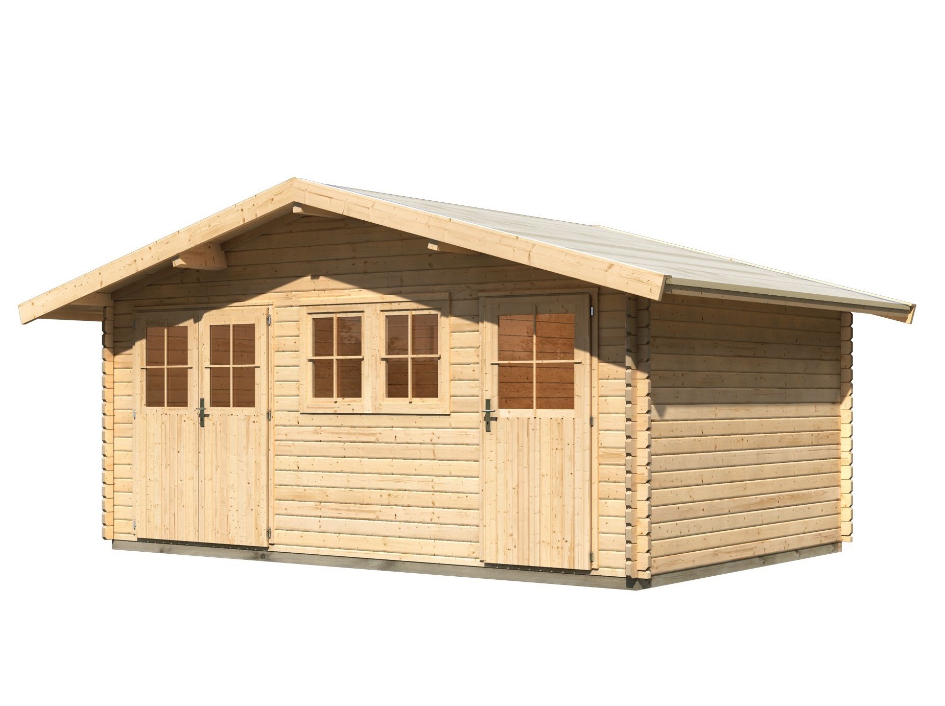 Dřevěný domek se silnou masivní stěnou. Tento model má sedlovou střechu a dvoukřídlé dveře na pantech s oknem v každém křídle. Stavebním materiálem domku jsou dřevěné profily síly 38 mm perfektně vyfrézované ze severského smrku. Dodáváme jako stavebnici v rozloženém stavu, kde stěny tvoří jednotlivé dřevěné profily, které pouze sesadíte do sebe, střechu tvoří celistvá deska. To garantuje relativně jednoduchou montáž, kterou zvládne každý český kutil.