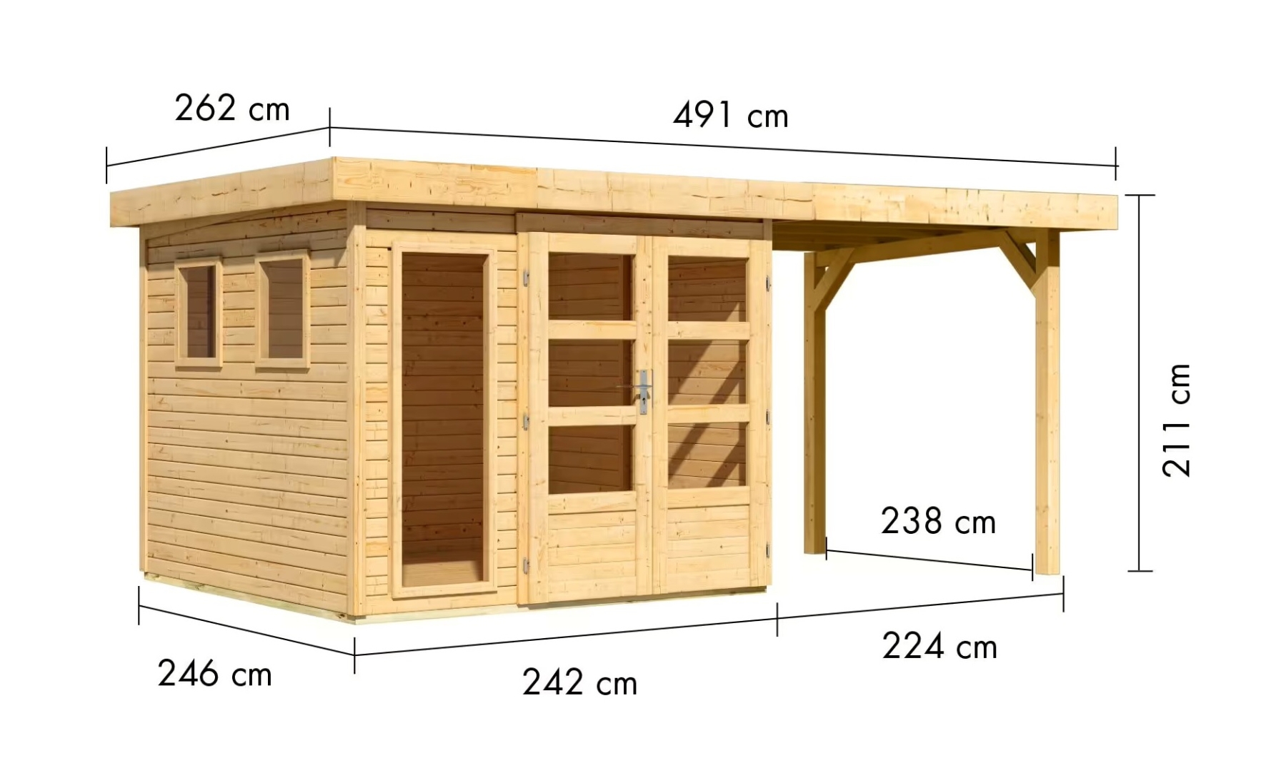 dřevěný domek KARIBU LAHAR 3,5 + přístavek 240 cm (12132) natur