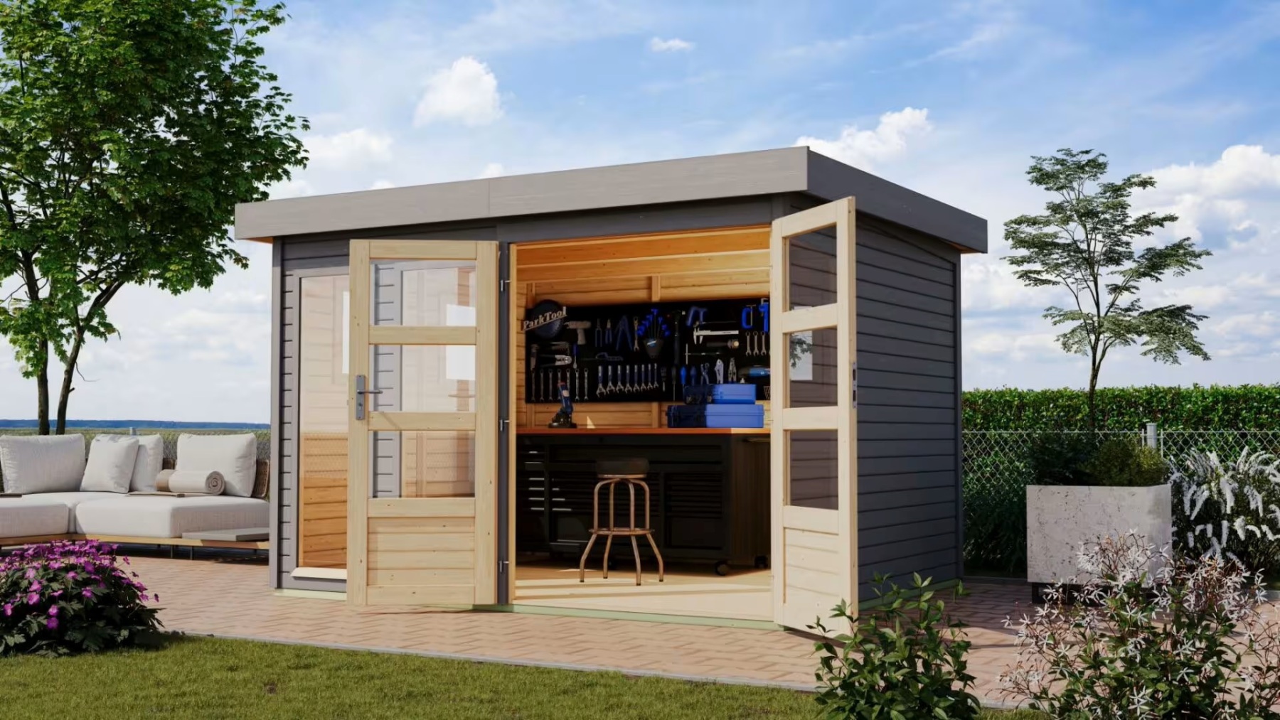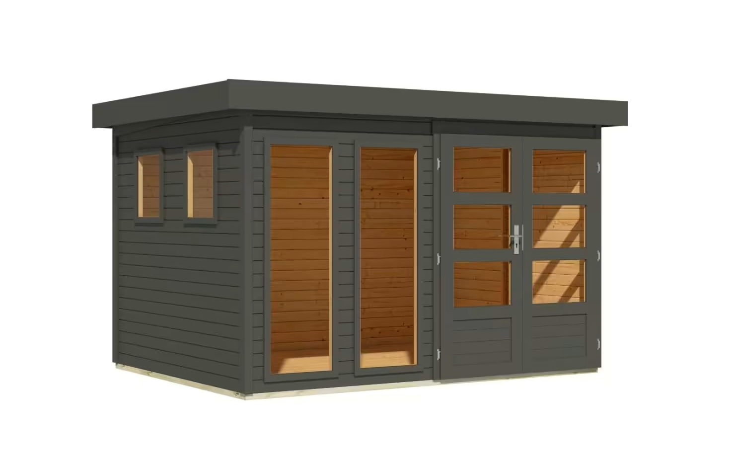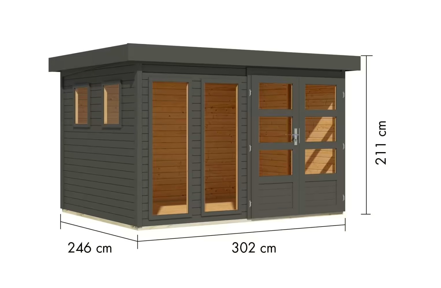 Tento model domku dodáváme v profesionálním nátěru KARIBU (odstín terragrau RAL 0604005):