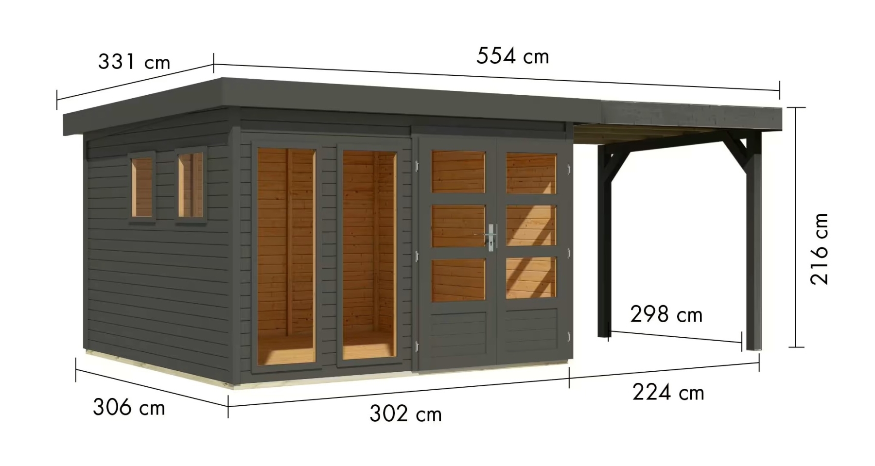 dřevěný domek KARIBU LAHAR 6 + přístavek 240 cm (12488) terragrau