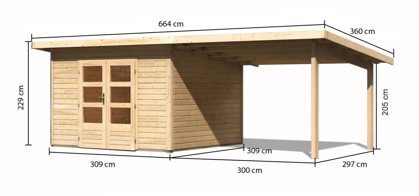 dřevěný domek KARIBU NORTHEIM 3 + přístavek 330 cm (77777) natur