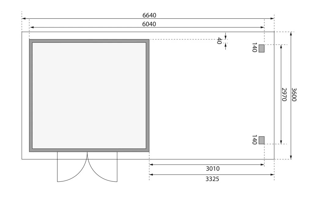 Tato verze domku obsahuje přístavek délky 330 cm montovatelný zprava nebo zleva.