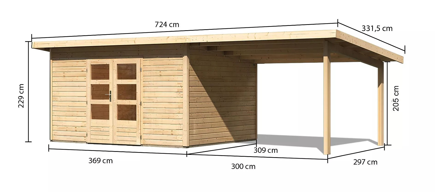 dřevěný domek KARIBU NORTHEIM 4 + přístavek 330 cm (91471) natur