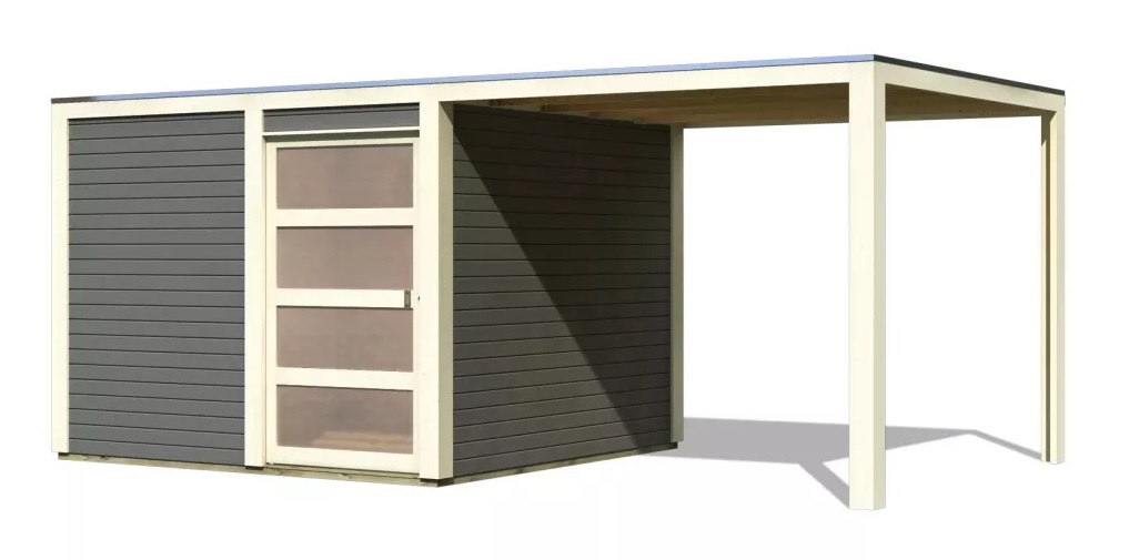 dřevěný domek KARIBU QUBIC 2 + přístavek 270 cm (89397) terragrau