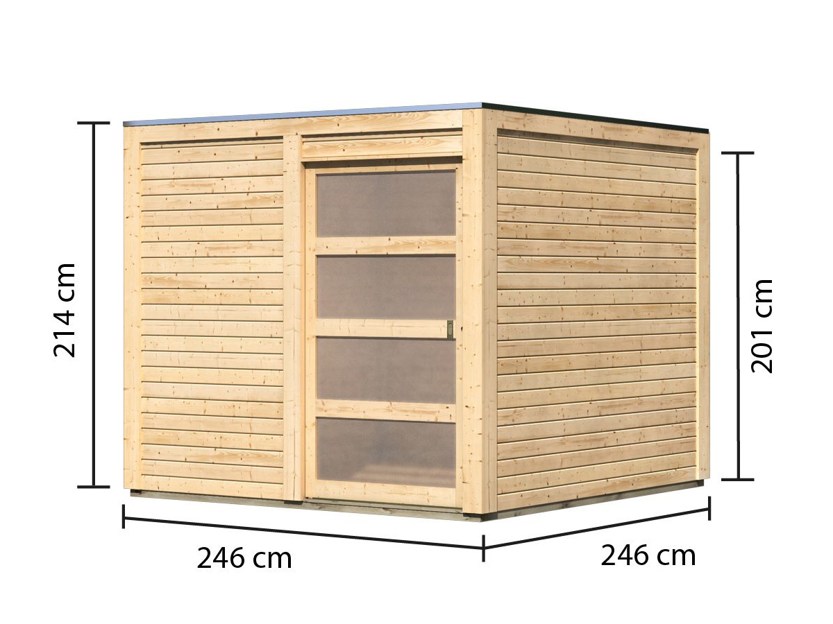 - střecha: plochá střecha, desky 16 mm (246 x 246 cm)