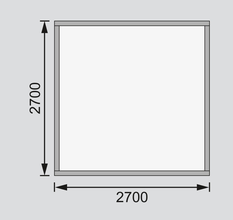Dřevěný domek, síla stěny 28 mm, rozměry š 274 x d 274 cm, vnější plocha domku 7,51 m2.