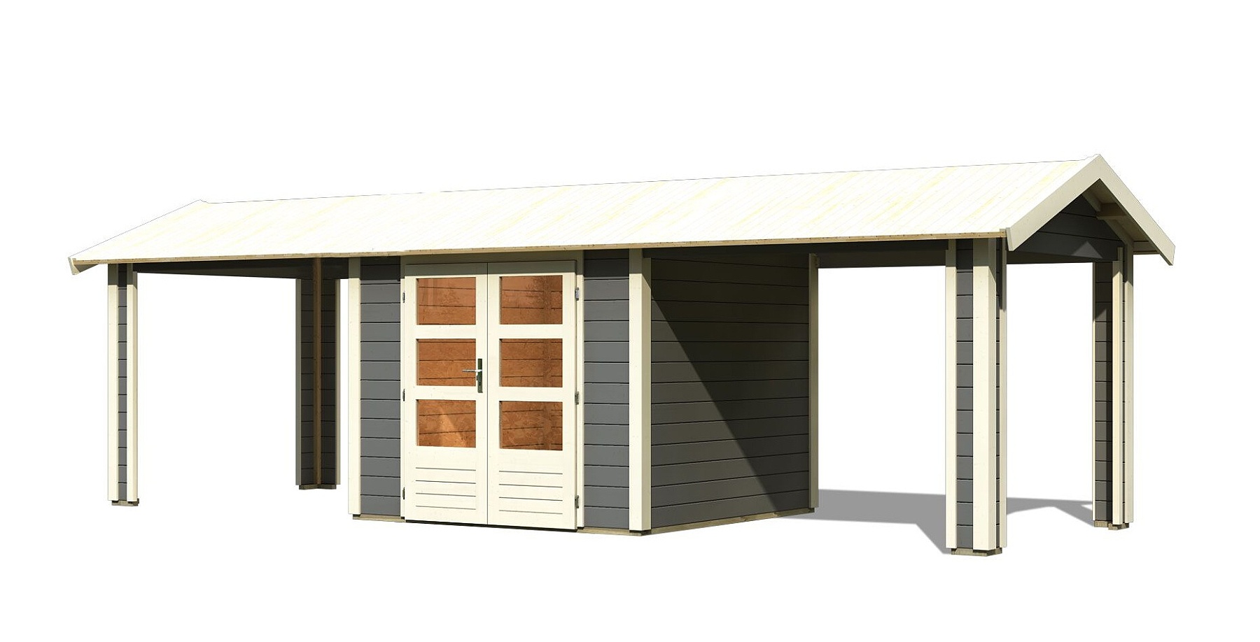 dřevěný domek KARIBU THERES 3 vč. dvou přístavku (31457) terragrau