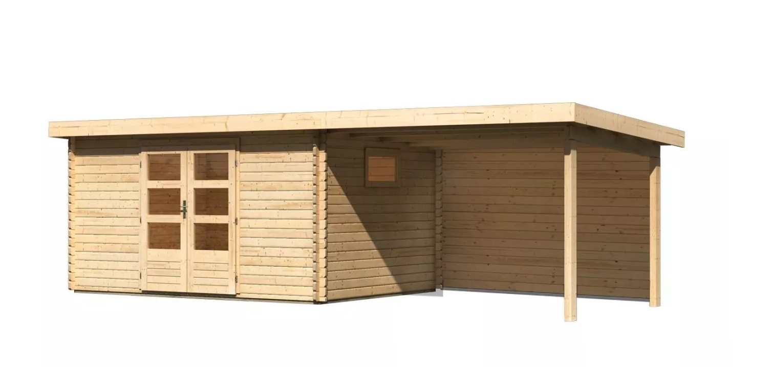 dřevěný domek KARIBU TRITTAU 5 + přístavek 330 cm včetně zadní stěny (10060) natur