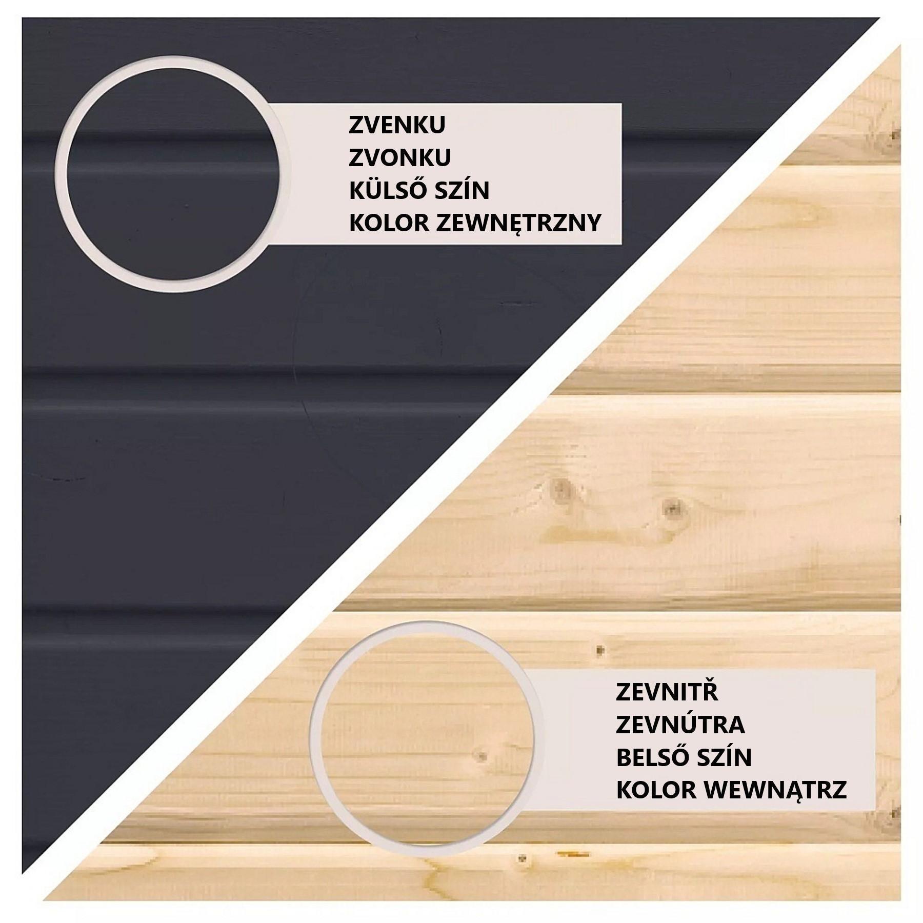 Tento model domku dodáváme v profesionálním nátěru KARIBU (odstín antracit RAL 7016):