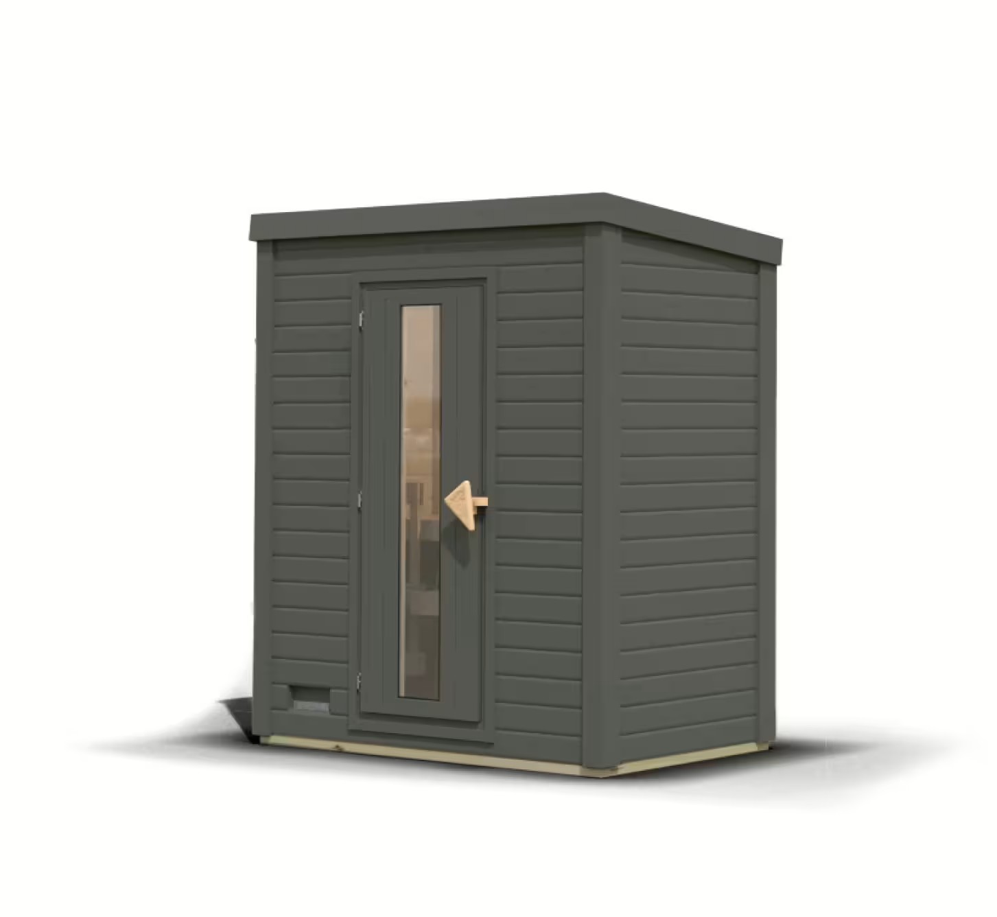 Venkovní finská sauna, stěna 38 mm, vnější rozměry š 196 x h 113 x v 228 cm, určeno pro 2 osoby.