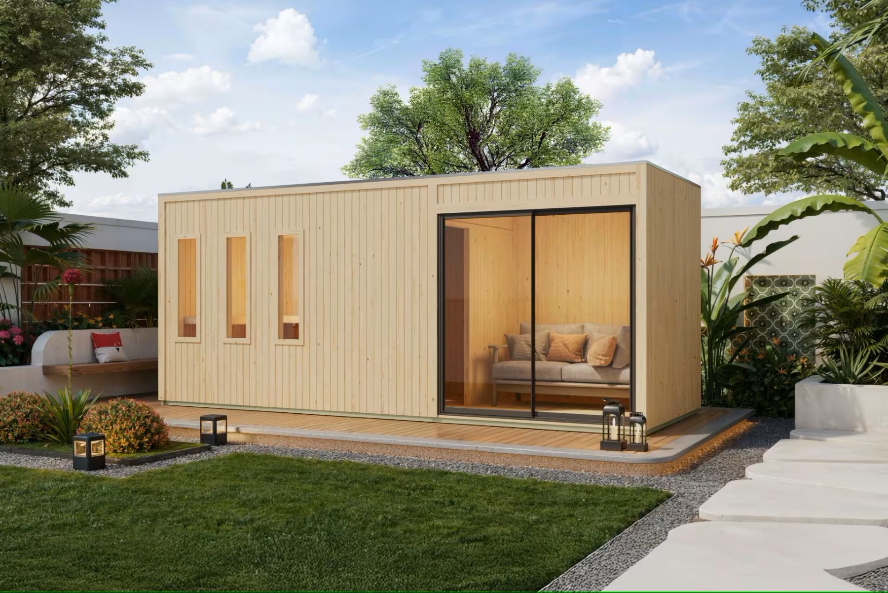 Tato luxusní venkovní sauna o rozměrech š 574 x h 217 cm přináší sofistikovaný wellness zážitek přímo do vaší zahrady. Díky 73 mm silným, minerální vlnou izolovaným stěnám, modernímu designu s plochou střechou a hliníkovými posuvnými dveřmi nabízí nejen výjimečné tepelně-izolační vlastnosti, ale i stylový vzhled. Interiér zahrnuje saunu s třemi pohodlnými lehátky z osiky, která pojme až 5 sedících osob, prostornou předsíň, kterou lze využít jako šatnu, relaxační zónu nebo úložný prostor, a dokonce i integrovanou místnost pro sprchu či toaletu. Velká okna z čirého skla zajišťují dostatek denního světla a propojení s přírodou, zatímco prosklené dveře mezi saunou a předsíní navozují vzdušnost a klid. Ideální pro každodenní relaxaci.