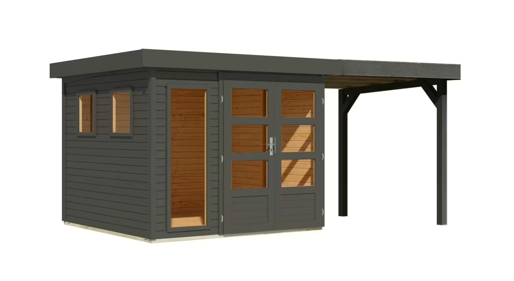 fa kerti ház KARIBU LAHAR 3,5 + menedékhely 240 cm (12486) terragrau