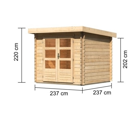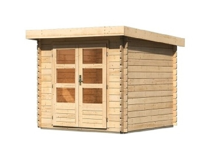 Egy faház alapmodellje kertjébe. Ez a modell lapos tetővel és dupla csuklós ajtókkal rendelkezik, mindkét szárnyban ablakkal. A ház építőanyaga 28 mm vastag, északi lucfenyőből tökéletesen mart faprofil. Bontott állapotban készletben szállítjuk. A sorozat nagy előnye a szabadalmaztatott 6-Plus sarokcsukló. Ezek együttesen nemcsak tartós és stabil konstrukciót, hanem robusztus összképet is biztosítanak. Ez garantálja a rendkívül egyszerű összeszerelést, amelyet bármely barkácsoló meg tud kezelni.