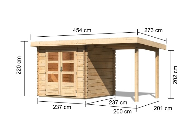 fából készült kerti ház KARIBU BASTRUP 2 + egy menedéket 200 cm (73290) natur