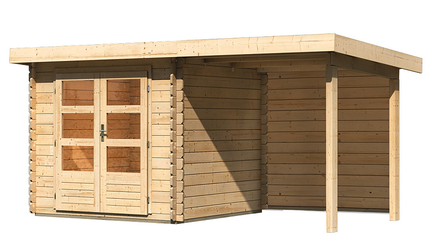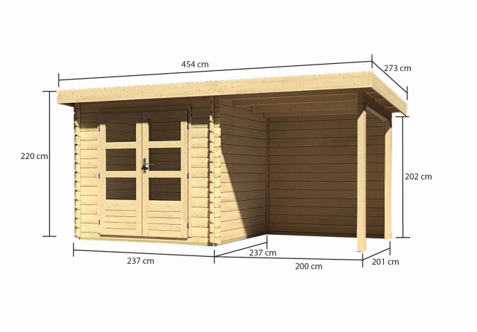 fából készült kerti ház KARIBU BASTRUP 2 + egy menedéket 200 cm beleértve a hátsó falat is (9300) natur