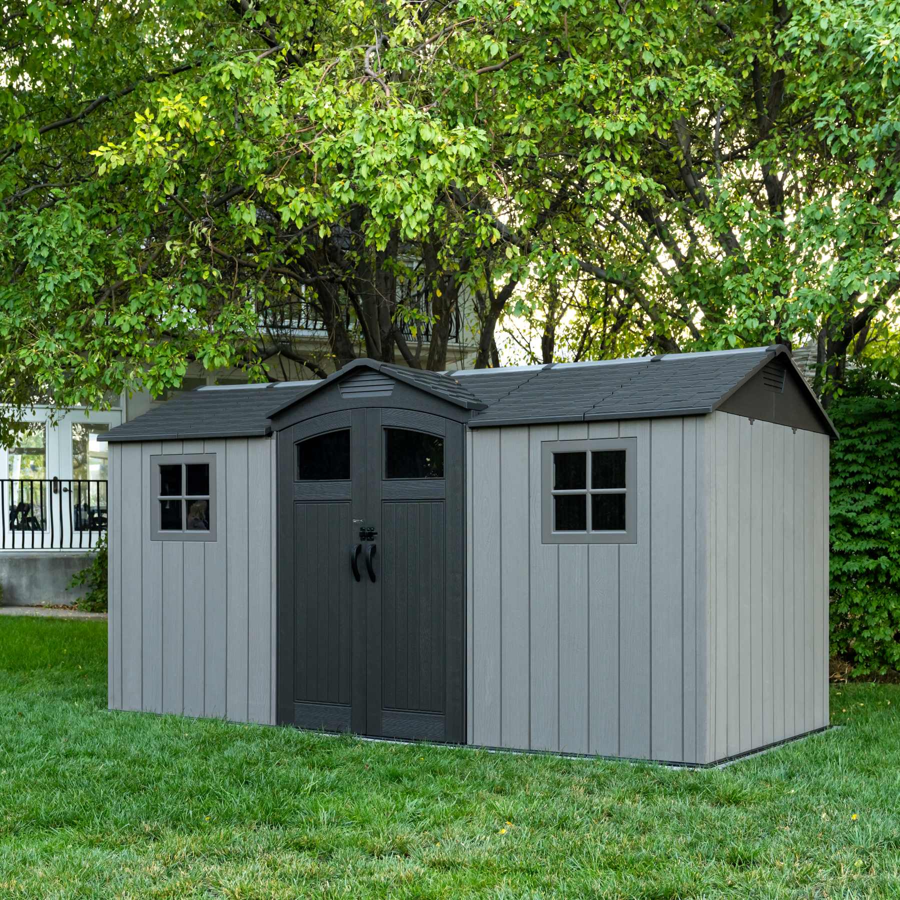 Robusztus "új generációs" műanyag ház kertészeti, sportolási, uszodai, grillezési, kempingezési, motorozási és egyéb igények tárolására. Modern kialakítás, könnyű összeszerelés, egész éves használat. A kertes ház fém tartószerkezetű, a dupla falak, a tető, a dupla ajtók és a padlózat masszív, nagyon tartós és gyakorlatilag törhetetlen műanyagból készült. A műanyag csúszásmentes padló a ház része (az ár tartalmazza).A ház zsanéros dupla ajtókkal van felszerelve. A dupla műanyag fal vastagsága 26 mm. A tető lejtése 30o, ami jelentősen csökkenti a tetőn lévő hó mennyiségét és nyomását. A ház anyaga (rendkívül ellenálló polietilén UV szűrővel) nem sárgul el, nem válik rideggé, így nincs szükség a ház rendszeres festésére, mint pl. faházaknál - a műanyag kertes ház gyakorlatilag karbantartásmentes. A házat úgy tervezték és gyártják, hogy az összeszerelés a lehető legegyszerűbb és legrövidebb legyen. Egyszerűen pattintsa be az egyes alkatrészeket a szomszédos részekre, és rögzítse a csatlakozást egy csavarral.