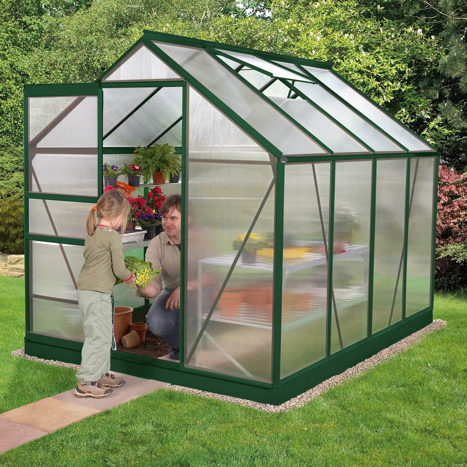 Hliníkový skleník, š 1,95 x d 2,57 m, zelená farba, 1x str. okno, polykarbonát 4 mm, plocha 5,01 m2.