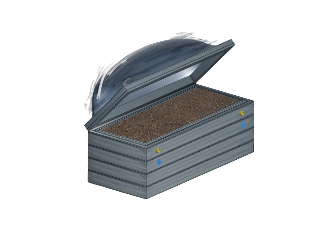 - odnímatelné víko pařeniště je velkou výhodou pro letní měsíce, je vybaveno třípolohovým aretačním systémem otevírání, víko je vyrobeno z mléčného akrylátu s UV stabilizací, které zajišťuje optimální rozptyl světla a dlouhou životnost materiálu